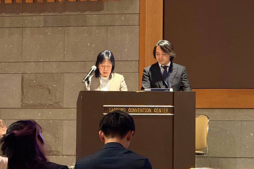 筆頭著者の加須市大越小学校大澤美和子校長(左)とCEO堀口による登壇のようす